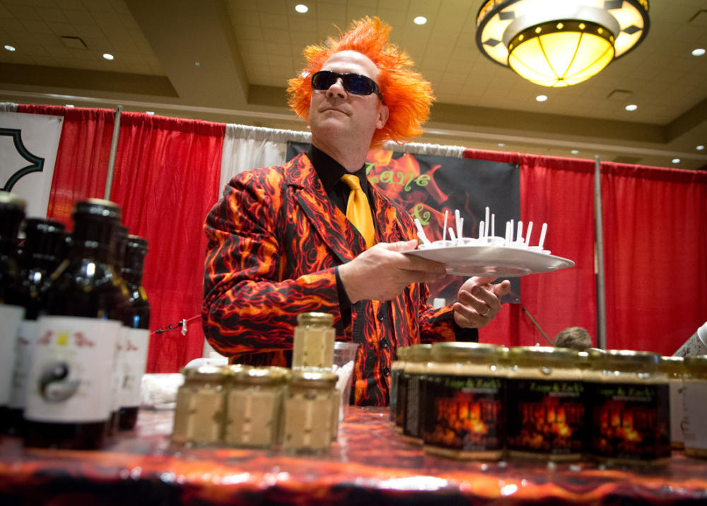 You pay $15 at the door and then get to wander the aisles, sampling salsas and sauces and types of chips and spicy beef jerky and all things fiery and delicious. Even things like jalapeno ice cream and red chile jelly and chipotle salad dressing.There are booths for chile cookbooks and cooking demonstrations for perfect BBQ – it’s a great event. On occassion you have to wander over to the beer line to get something to cool your mouth off. . .The Fiery Foods Show is like a fantasy gathering of every taste that New Mexicans love, and it’s well worth the admission cost.