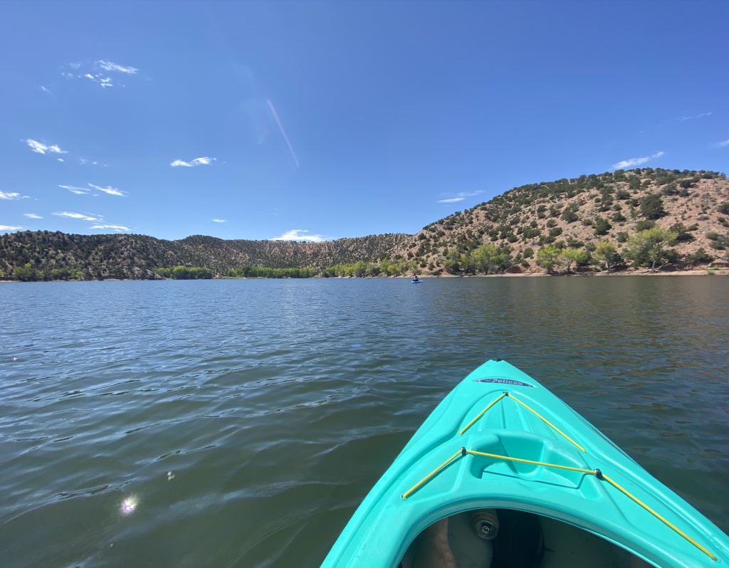 I know many people are surprised when I talk about my kayaking adventures in my home state. I’ve been to Cochiti, Heron, Abiquiu, Fenton and of course Ute lake. But finally, I was able to check off a place I have been wanting to explore for the first time, Santa Cruz Lake State Park. First of all, the drive was peaceful and felt like traveling to somewhere totally different. As I followed a friend on a narrow winding road, I was amazed at the calm and stillness around me. The road from Santa Fe takes you past Tesuque and up through Nambe right on the first part of the High Road to Taos (if you know you know).