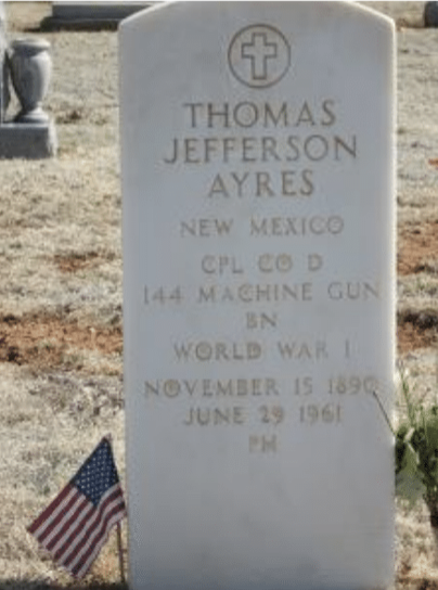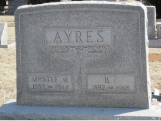 Besides all the funerals of my grandparents, my clearest memories ofthe Tucumcari Cemetery are the Saturday morning visits when my cousin Susie and I went with my Grandma Ayres to visit Grandpa Ayres’ grave. My grandparents married in 1912, and their love story is a blog post (or two or three) in and of itself, but my Grandma Ayres never let a day, if not an hour, go by without talking about how much she missed her husband, Frank, after he died. He was born Benjamin Franklin Ayres, and he is buried next to his brother, Thomas Jefferson Ayres.