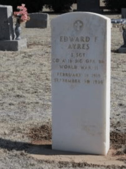 Susie and I, the babies of all the Ayres grandchildren, spent countless weekends with Grandma, and at least once monthly, we carried plastic flowers, or roses from Grandma’s rose bushes, out to the cemetery to put on Grandpa’s grave. She’d pluck errant grass from around the stone (which already had her name on it -Susie and I thought that was incredibly creepy) and we’d arrange the flowers to suit her, and then she’d tell us something about our uncle Edward, my mother’s oldest brother, who was buried on her side of the headstone. Edward was the oldest brother, and in my mind’s eye (he died before I was born), from all the stories I’ve heard, he was a handsome, dashing womanizer who never married, who came home from World War II with a trunk full of presents (including a black and yellow satin fringed pillow with “Hawaii” sewn across the front for Grandma -oh how I coveted that pillow. I thought it was the most beautiful thing I had ever seen). But when Grandma Ayres would talk about Edward, she would eventually end up with tears in her eyes and Susie and I would try to distract her by asking questions about Uncle Tom, and all of them bringing the babies (Edward and Mary Belle) to New Mexico from Texas in a wagon.