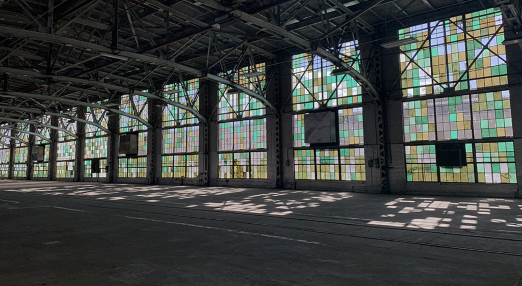 Yeah. So these, this space, and I think I have the square footage somewhere, but, um, you know, vast spaces where, um, rail, the cars could be brought in for maintenance, right? And so there’s maybe a, a dozen or so tracks that they could go down in the machine shop. So that gives you a sense. And so that the size of the cranes, the Morgan cranes are anywhere from 150 megatons to 250 ton cranes. Um, that can actually lift locomotives, lift engines up into the sky. And so that’s kind of easy. The height, um, the width, these things are a huge cavernous spaces. The blacksmith shop, um, is sort of, was the first project, uh, that they got that was taken on for renovation. Um, and so yeah, they have these beautiful, um, you know, they’re concrete and steel primarily. And, and, and the glass curtains were would’ve been originally a uniform color, is my understanding. But yeah, they, they were just subject to, you know, an easy target for vandals, uh, over, over the years that it was left vacant. Um, but as it’s been restored, they’ve replaced those with these beautiful sort of, yeah, these, these greens and yellows that, um, when the sun’s coming through, just, um, if folks want to see colors, uh, I would encourage them. And I, I always, um, tell folks on the tour to visit the Wheels Museum. And for our online listeners, they can go to the Wheels Museum website, um, if they just Google Wheel Wheels Museum, I don’t wanna get the, the exact address wrong, but maybe you can include that in, in show notes. But, um, they can see some before, um, some sort of then and now pictures of what it looked like.