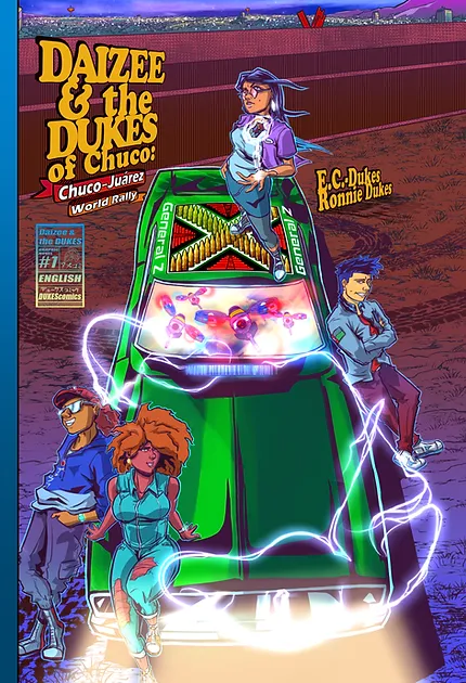 E.C. – Dukes: A Xicana writer, filmmaker, and educator, from Chaparral, New Mexico. E.C. VROOM (ed) her way through school and came out victorious with a Doctor of Philosophy degree in Rhetoric and Composition from the University of Texas at El Paso, a Master of Fine Arts degree in Film from Columbia University in the City of New York, and a Bachelor of Arts degree from the University of Minnesota – Twin Cities in Journalism and Chicano Studies and a minor in Theatre Arts. She has used all her acquired knowledge and skills in her comics, graphic novels, scripts, theater plays, academic scholarships, films, and teachings.