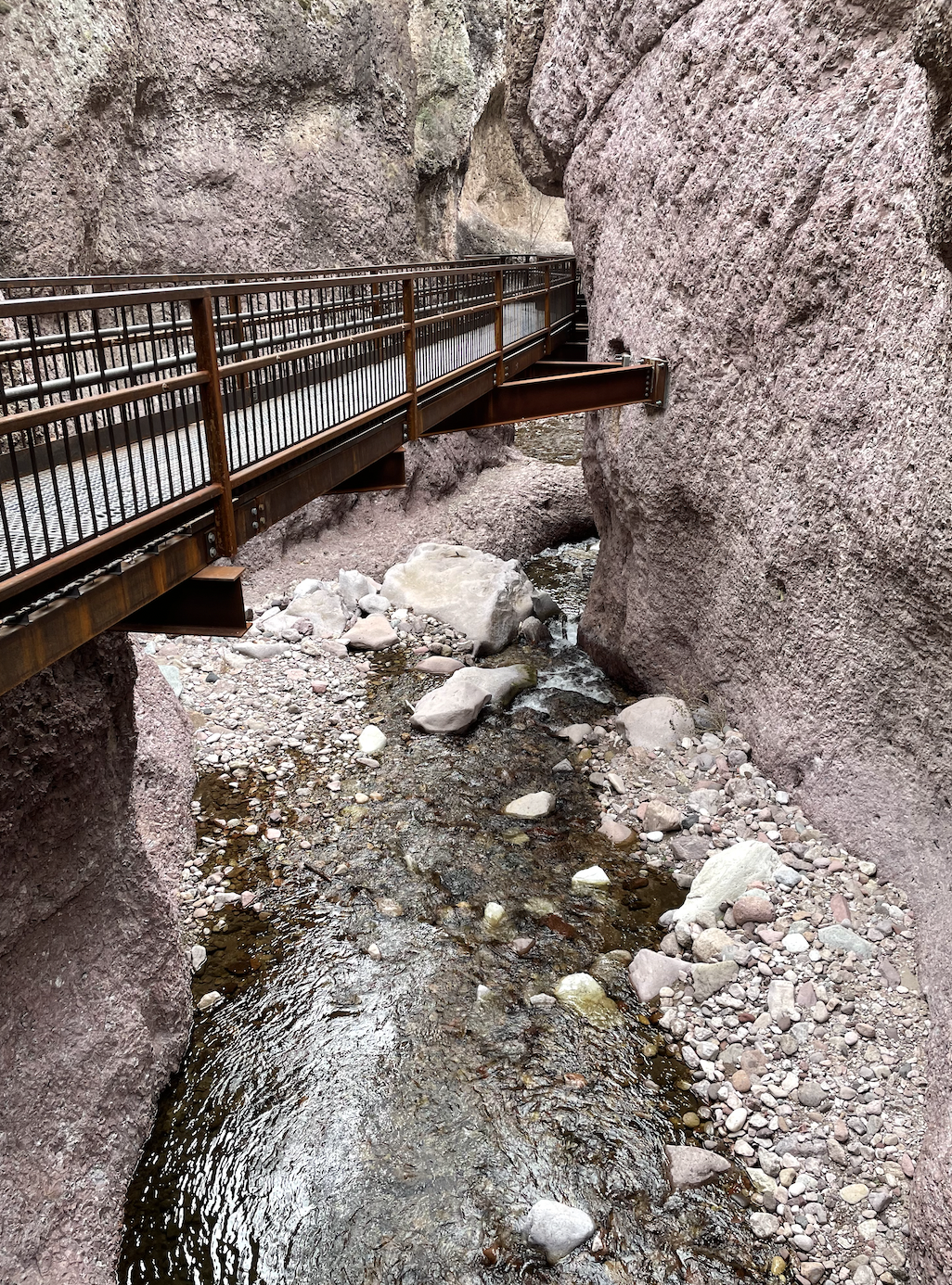 You could do it on your trip to white sands and make a big circle, like a big yes. Trip about like with it. But, there’s not too much else around there. It’s not far from Las Cruces, but it is a, like a hiking trail. That’s a built up. I mean, they call it catwalk because it’s a wooden and metal catwalk. I dunno how else to describe it. Built into the walls of it’s yeah. It’s built into the walls of the cliffs and rock there. Um, so let me read a little bit about it. The, this, it was an old gold and silver mining area, uh, above whitewater canyon and in 1893, the town grew around the mill and the mill only lasted about 10 years, but now this catwalk is basically just a really cool place to go and do a hike. It is, you know, it’s a day use area. I think you can camp around there, but you can’t really camp in there. Um, takes about one to two hours to do the hike, but it’s just really pretty, there’s lots of running water there and you can do it pretty much all year round. You know, it just depends on the weather, what you wanna put up with. But,