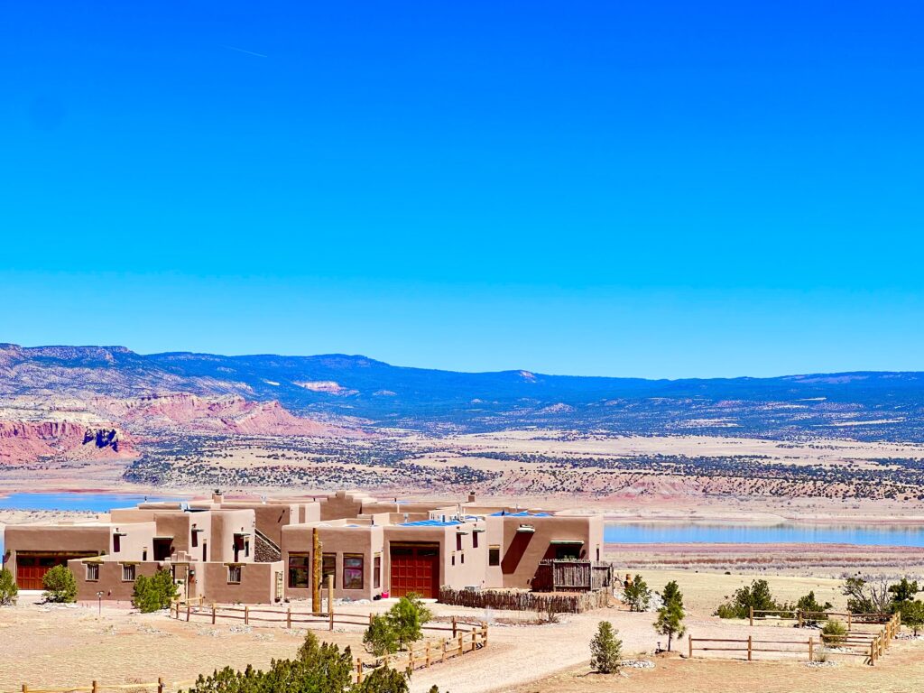 Yeah, um, this is I’ll start off with this anyway, is that, um, this was back in, in 2005 and we were taking a trip to Santa Fe with Carolyn’s parents who, who we just got back from seeing by the way, in, uh, in the Denver area. And we were in Santa Fe. And, um, I love her parents dearly and really enjoy the time I get to spend with them. And we were on about the third day of all staying together in Santa Fe. And after, after the third day as been, honey, I’m just gonna take a little drive and just explore the area around here. Cuz we hadn’t seen much outside of Santa Fe, and that was 2005, and it’s kind of hard for us to put ourselves back in that, uh, 18, 18 year ago, uh, period. But, uh, iPhones were, were not part of our existence. Uh, GPS was, was very primitive and used mainly for, for hiking. And so maps and were principally are still of our way of, of, of, uh, getting around. And so I just started coming up 84 up, up from Santa Fe, and then you start seeing these red rocks start to appear just like kind of you do when you start approaching a Sedona. And, and as I got closer, there just became more and more and more of ’em. It says, this is really kind of a beautiful place. And then you see a sign that says the one mile, and you can’t believe that there’s actually a dam in New Mexico, but if there is, certainly there’s no water in behind that dam. And then you turn the corner on 96 and it’s like, oh my gosh, here’s one of the most beautiful lakes I’ve ever seen. Right? And along with, you know, the backdrop of, of the Red Rocks, like this is one of the most prettiest places I’ve ever seen. And so the very next day I brought the whole family up, we all looked at, at some available lots for sale. The very next day after that, we bought our first lot was just the first and many that we purchased, uh, up in this area just because, and it kind of comes down to what Georgia O’Keefe said is, I’m not so sure that I found or we found this land up here as much as it may have found us. And, and when it did, it was undeniable that this had to be a part of our life.