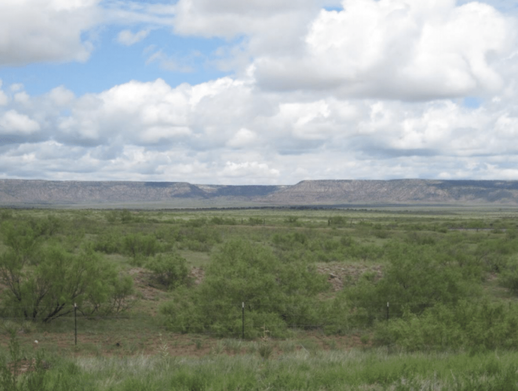 There’s a stretch of road on I-40 about 12 miles west of Tucumcari where you pass a short little mesa on the right and then the road swings ever so slightly to the north before opening onto a broad plain heading straight west. The view will make you think “vistas” and “wide open spaces.” It’s rimmed on all sides by mesas, but the expanse between the highway and the mesas is miles and miles of New Mexico space. The little village of Montoya sits at the west end of that particular valley.